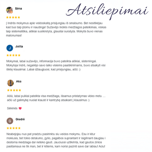 Kiekvienam mokiniui garantuoju bent 1 val. gyvo individualaus susitikimo su manimi kiekvienai temai!