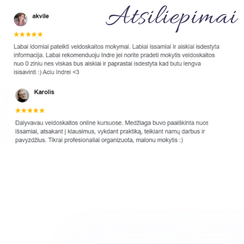 ✔ Mokymai vyksta individualiai (ONLINE). Tad nereikia laukti renkamos grupės, o visas dėmesys skiriamas tik jums. Mokytis galite patogiai iš bet kur.